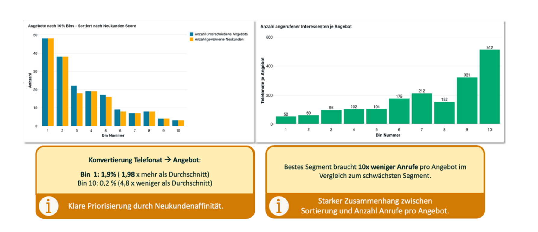 Im Backtest zeigte sich, dass die identifizierten Potenziale klar priorisieren und jene Interessenten zuverlässig hervorheben, bei denen besonders hohe Abschlusschancen bestehen. So kann der Vertrieb mit gleichem Ressourceneinsatz deutlich mehr Wirkung erzielen.